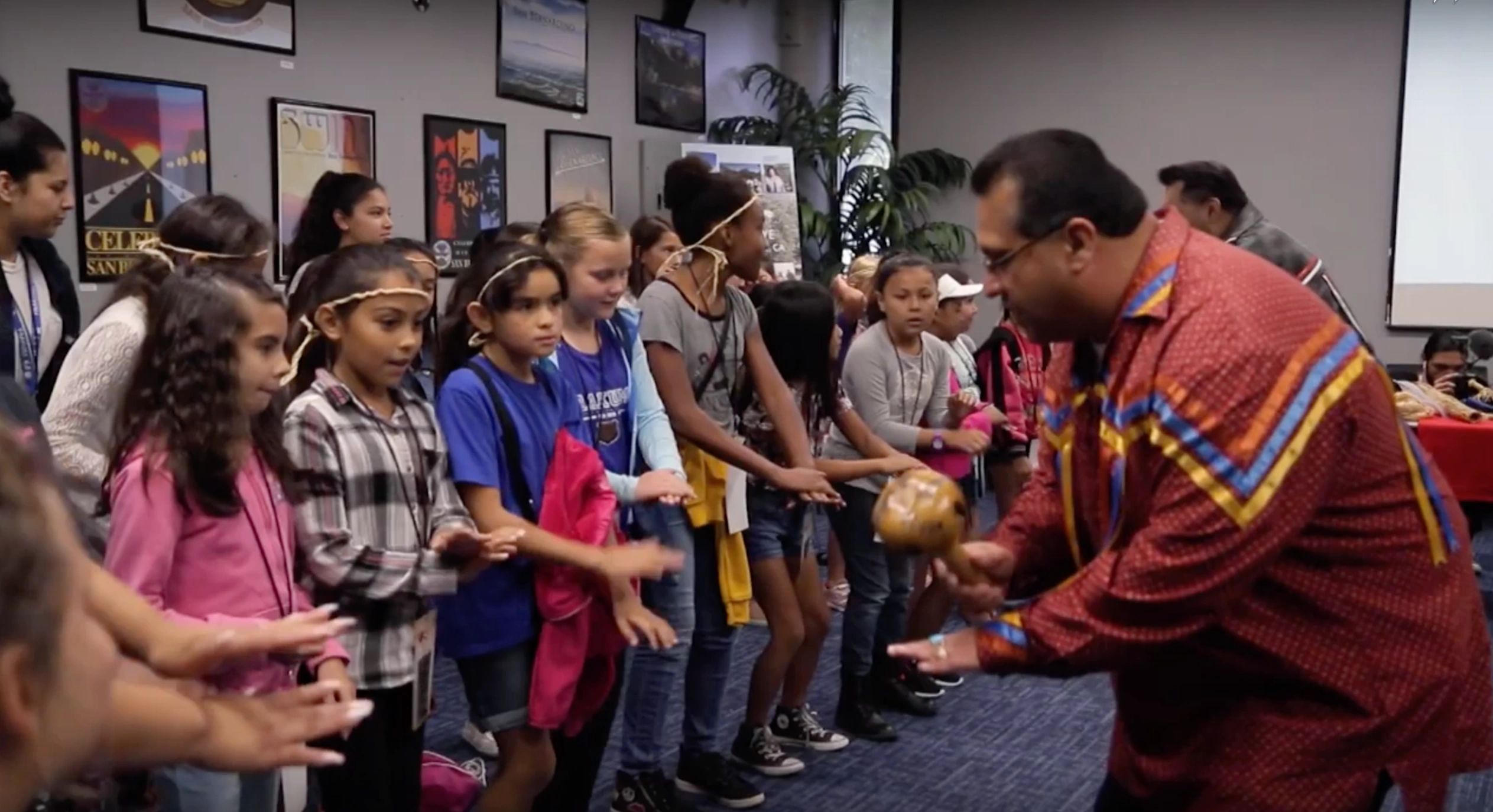 Local schoolchildren experience California Native American Day by interacting with Native tribal educators from around Southern California.